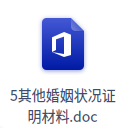 | 1 | 特殊情形提交:當事人聲明離異、喪偶或者聲明的婚姻狀況與婚姻登記機關核查信息不一致的,應當向登記機關提交能夠證明其聲明真實性的離婚證、 加蓋檔案保管部門印章的 離婚登記檔案、法院生效司法文書、配偶居民死亡醫學證明(推斷)書等。 |