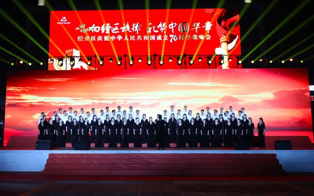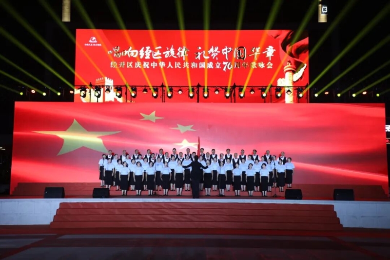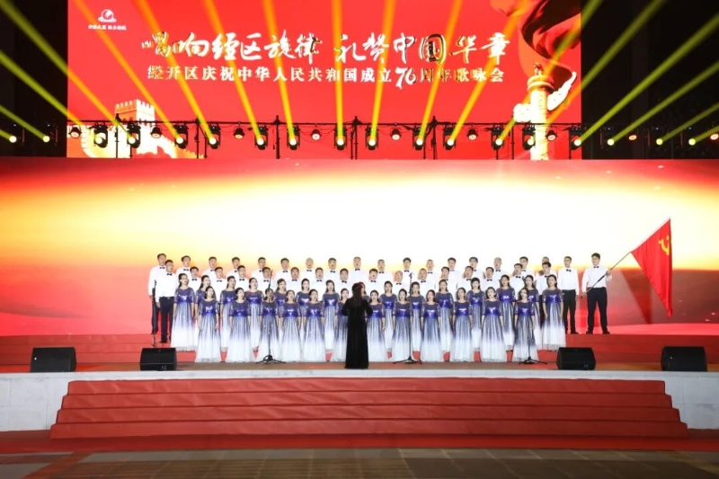 金秋放歌禮贊祖國,奮進經區唱響華章。為熱烈慶祝中華人民共和國成立76周年,謳歌偉大祖國輝煌成就,展現經開區干部職工奮發有為的精神風貌,9月25日晚,“唱響經區旋律 禮贊中國華章”經開區慶祝中華人民共和國成立76周年歌詠會在智慧谷活力廣場隆重舉行,用歌聲表達對祖國的深切熱愛與美好祝福。區領導王清、王啟、王役兵、邵明光、邱魯金、趙揚、王文萍、譚波、于斌、王利輝、李慶龍出席活動。
